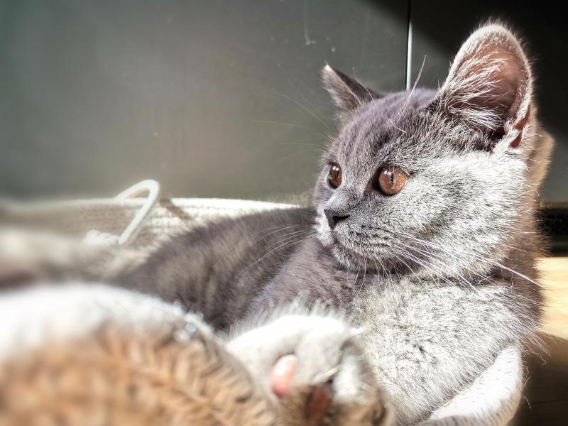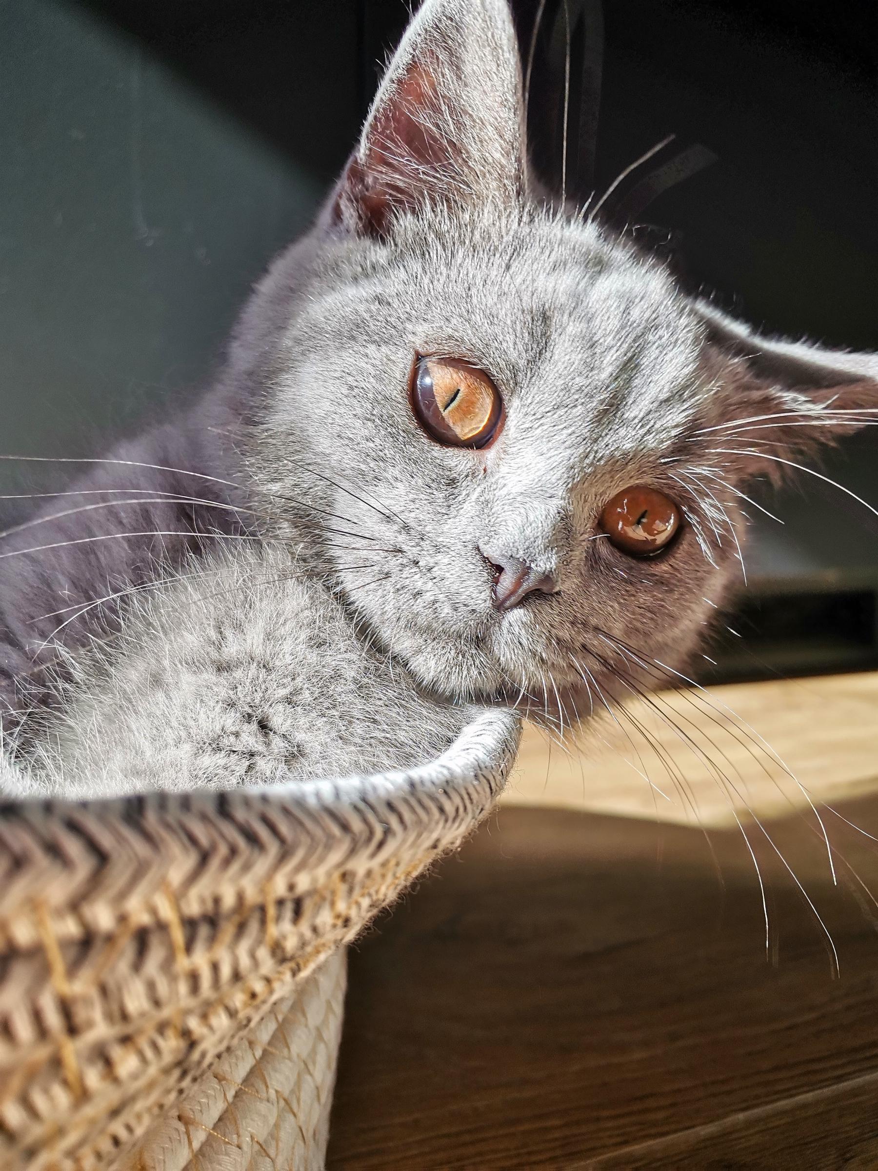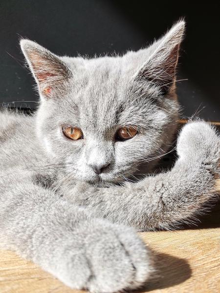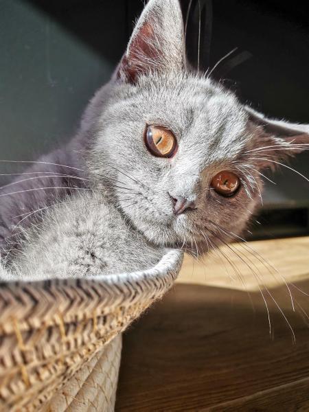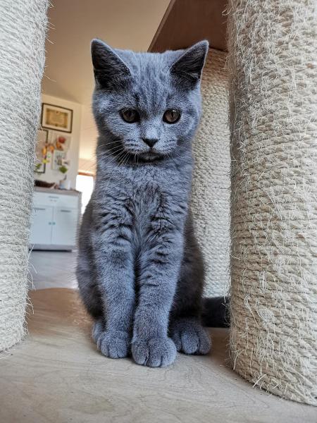 Die BSH sind eine Rasse, die das Leben langsam angehen. Und der Marlo ist wirklch ruhig. Er ist ein lieber und verschmuster klassischer blauer (dunkelgrau) Katerchen.