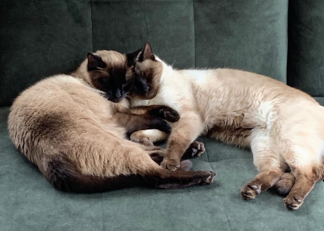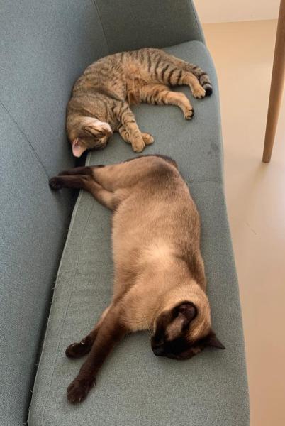 Hallo, dürfen wir uns vorstellen? Wir sind Maymay (geboren ca 05/23) und Yamyam (geboren 06/22), zwei Siammix-Kater und wohnen bei einer Familie mit zwei schulpflichtigen Kindern in Winterthur.