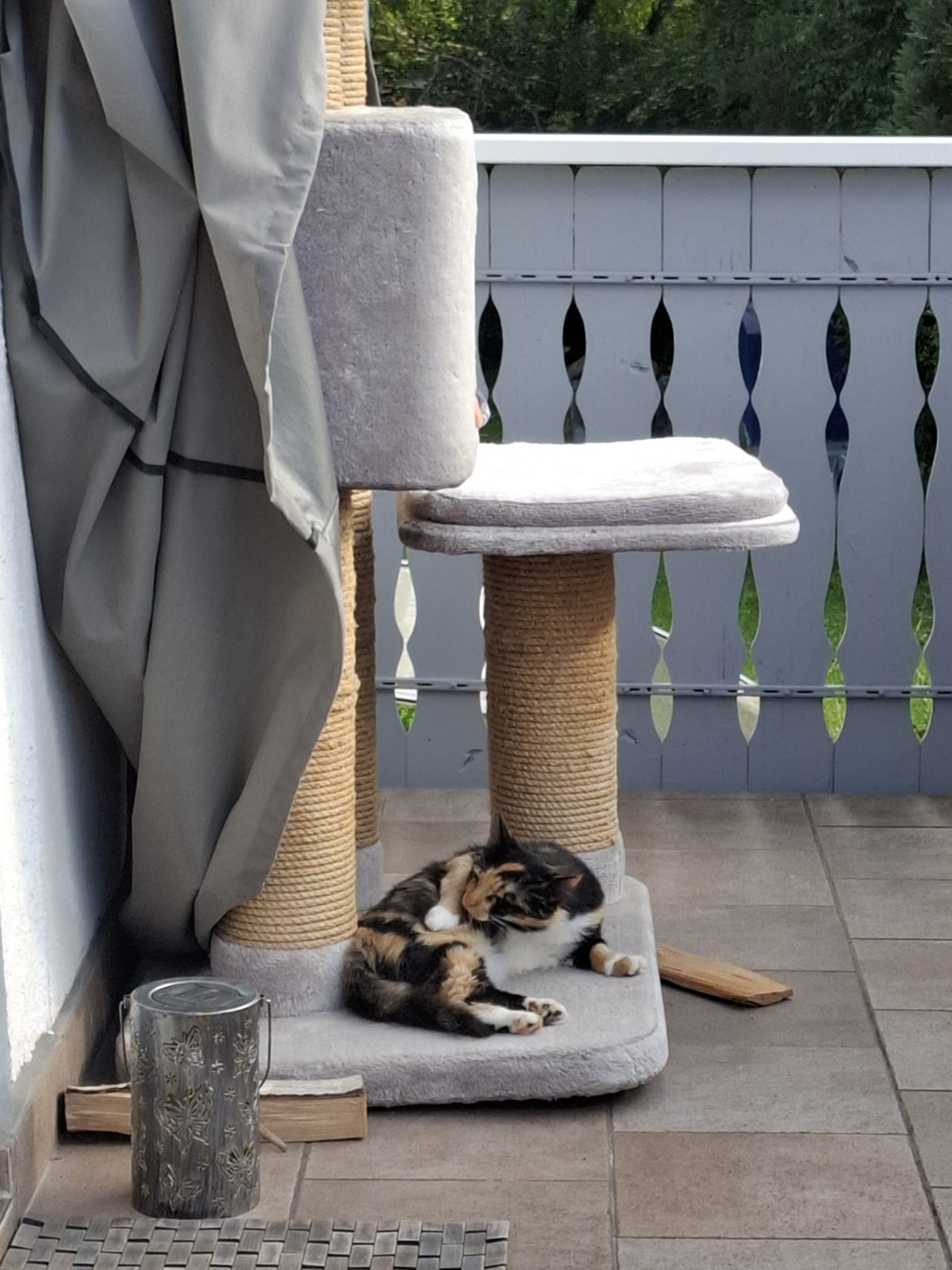 Gerne leistet sie Dir auch im Homeoffice Gesellschaft und liegt entspannt auf der Kratztonne am Fenster. Sie ist keine ausgesprochene Schmuserin. Doch mit Zeit und Geduld wächst das Vertrauen zu ihren Menschen. Dann geniesst sie kurze Streicheleinheiten und das abendliche Spielen mit der Katzenangel und Spielmäusen.