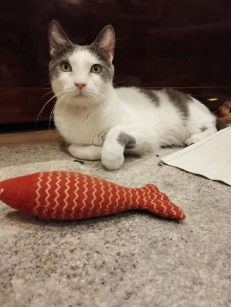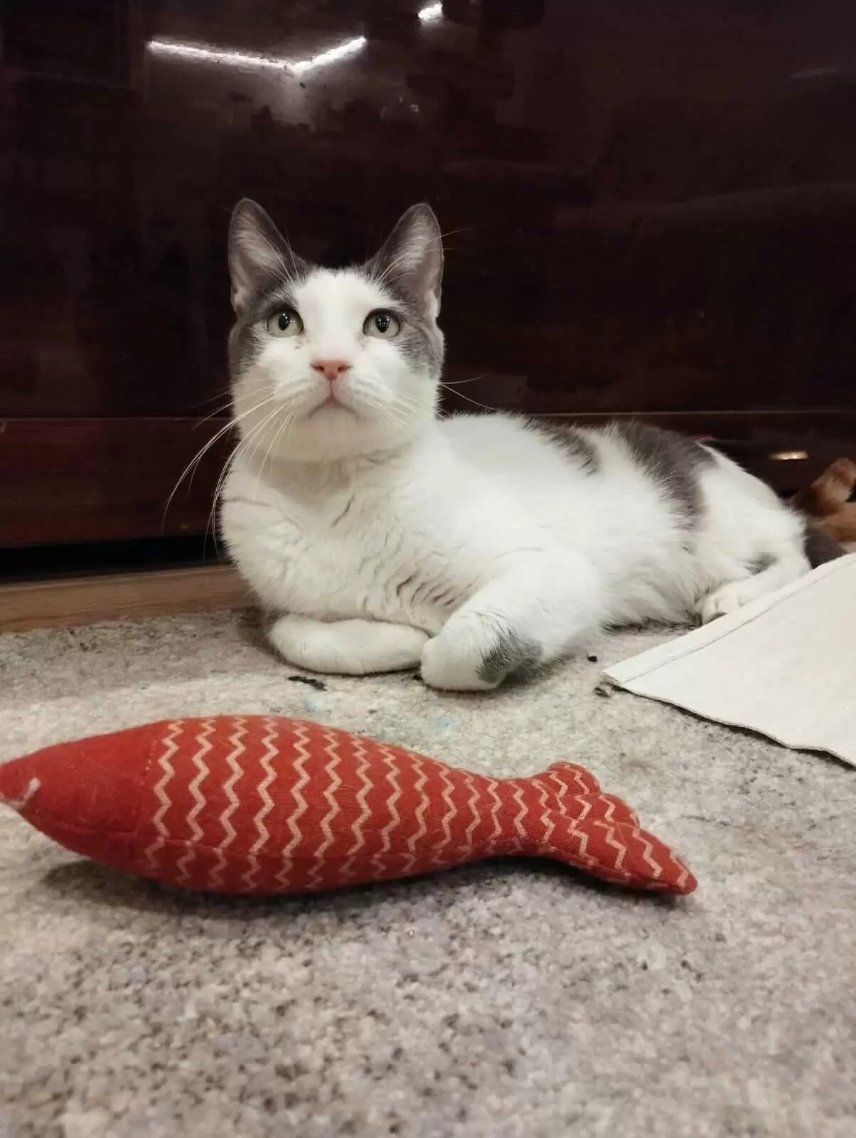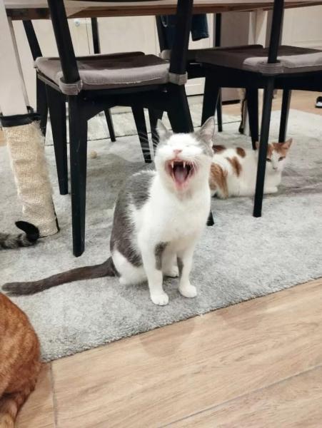 Merlin stört das überhaupt nicht, er ist ungebremst gut gelaunt und verspielt oder faul, wie es sich gehört. Für die Spezies Katze. Vollkommen unkompliziert im Umgang mit Artgenossen, wobei er den rotweißen Arthur besonders liebt. Merlin neigt immer mal wieder zu Atemwegsinfekten, aber es leben leider auch zu viele Katzen in der Pflegestelle. In einem Haus mit nur wenigen Katzen herrscht ein ganz anderes Raumklima und wird Merlin definitiv helfen. Leider sind Pflegestellen aber sehr dünn gesät in Athen.