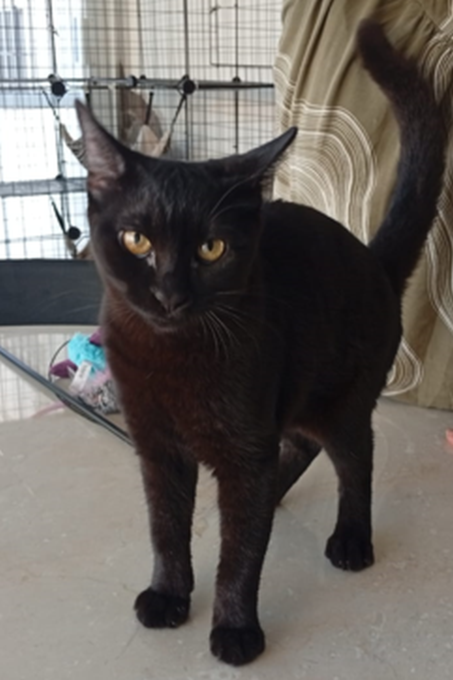 Im März brachte ein junger Mann fünf schwarze Kitten zu Rita in die Pflegestelle. Er hatte sie in einem Gebüsch gefunden. Sie waren dehydriert und wohl schon mehrere Tage ohne Nahrung. Eines der Kitten konnte nicht mehr gerettet werden. Die anderen vier wurden von Rita aufgepäppelt und haben sich zu tollen, eigenständigen Persönlichkeiten entwickelt. Ihr Bruder Max durfte schon in sein Für-Immer-Zuhause umziehen.