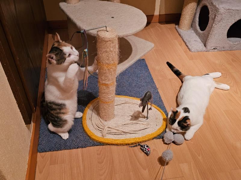 Sie kennen den Kontakt zu anderen Katzen, sowie Hunden, sind aber kein grosser Fan davon. Von Hunden haben sie eher Angst (ausser es ist ein sehr ruhiger Hund) und gegenüber anderen Katzen sind beide sehr dominant.