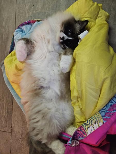 Minka ist eine sehr verschmuste Neva Masquerade Katze. (Sibirische Waldkatze) sieht optisch aus wie eine Birma) Sehr menschenbezogen und anhänglich. Eine wirklich süsse Katze die gerne beim Menschen ist.