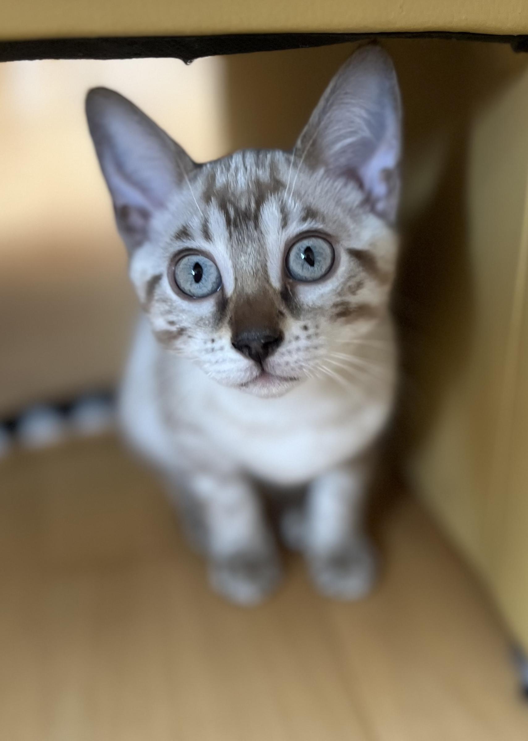 Unsere entzückenden Bengalkitten dürfen ausziehen! Es ist noch ein weibliches Kätzchen frei. Es ist weiss mit der typischen Bengalmusterung ähnlich einem Schneeleoparden. Lassen Sie sich überraschen vom samtenen Fell mit Glanz!