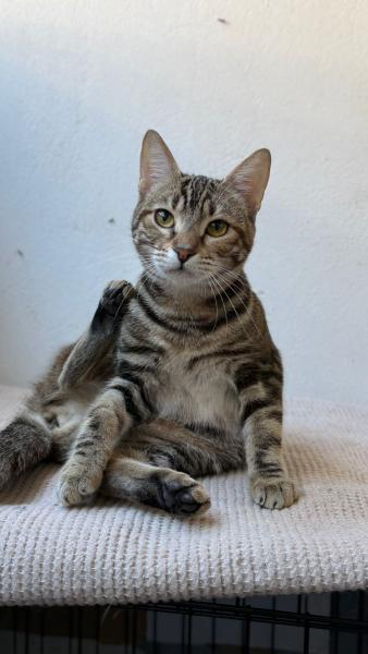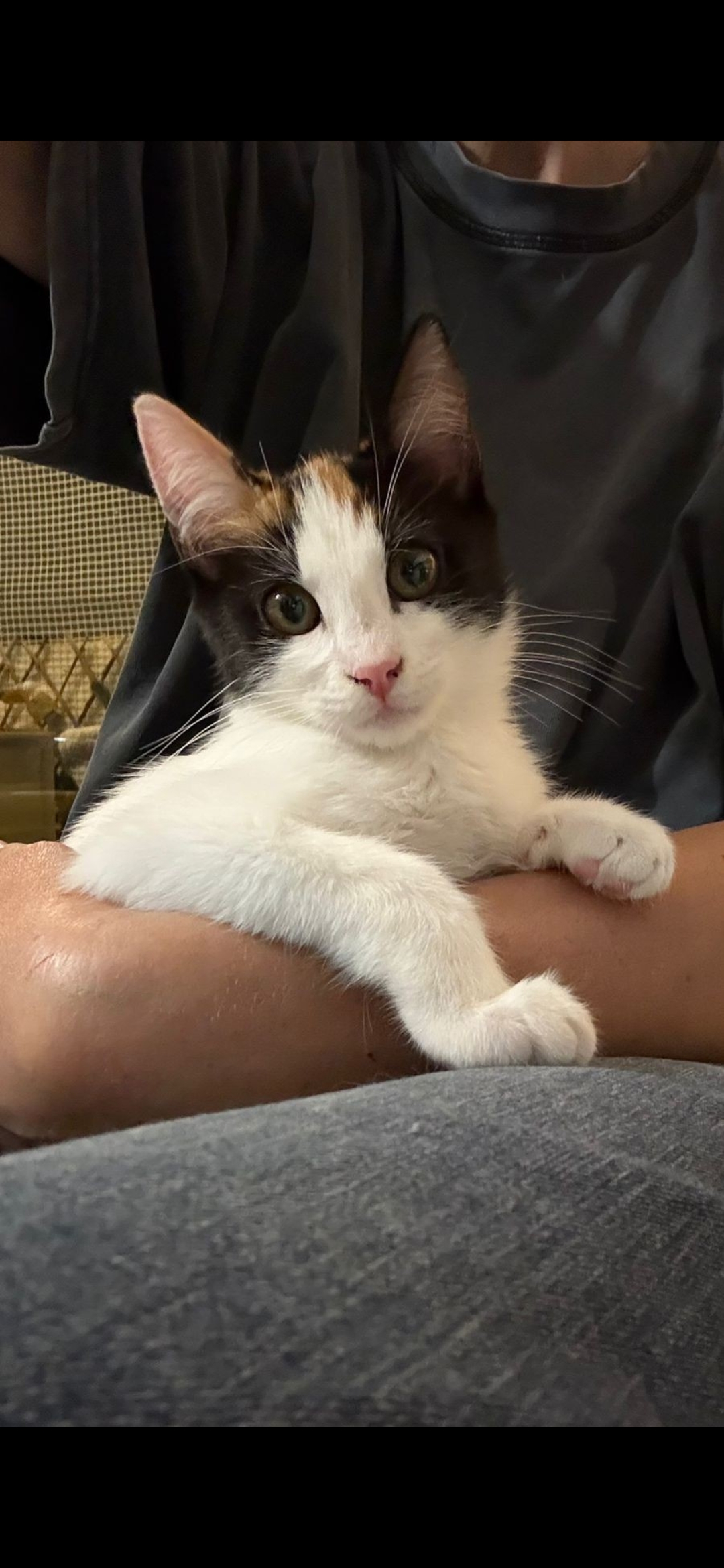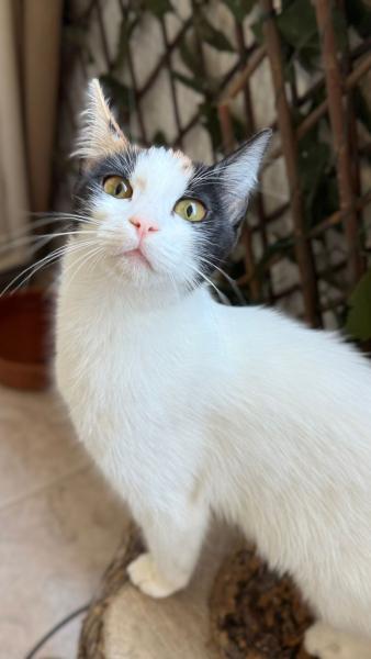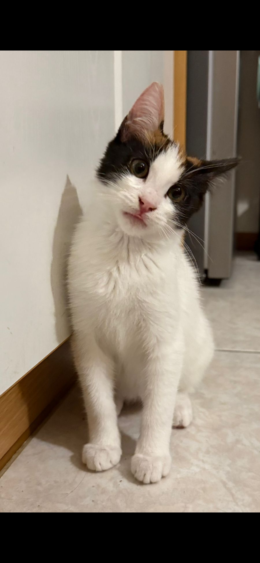 Kurz davor hatte derselbe Tierarzt ein weiteres Kätzchen gefunden – Vegalina. Sie lag mitten auf der Straße, von einem Auto angefahren und liegen gelassen. Mit nur 1,5 bis 2 Monaten musste sie operiert werden, die für ein so kleines Kätzchen unglaublich riskant war. Aber Vegalina bewies, dass sie stärker war als das Schicksal. Sie hat überlebt, sich wunderbar erholt und heute ist sie ein lebhaftes, kluges und liebevolles Mädchen.