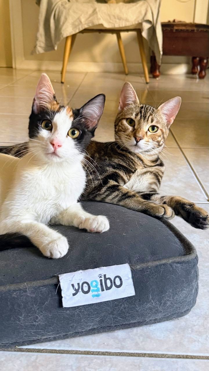 Die beiden kleinen Überlebenden trafen sich in der Klinik, und von diesem Moment an geschah etwas Magisches – sie wurden unzertrennlich. Sie spielen zusammen, jagen sich gegenseitig hinterher, erkunden alles und wenn sie müde sind, kuscheln sie sich zusammen oder schlafen gerne auf ihren Menschen. Da geniessen sie auch die Streicheleinheiten.