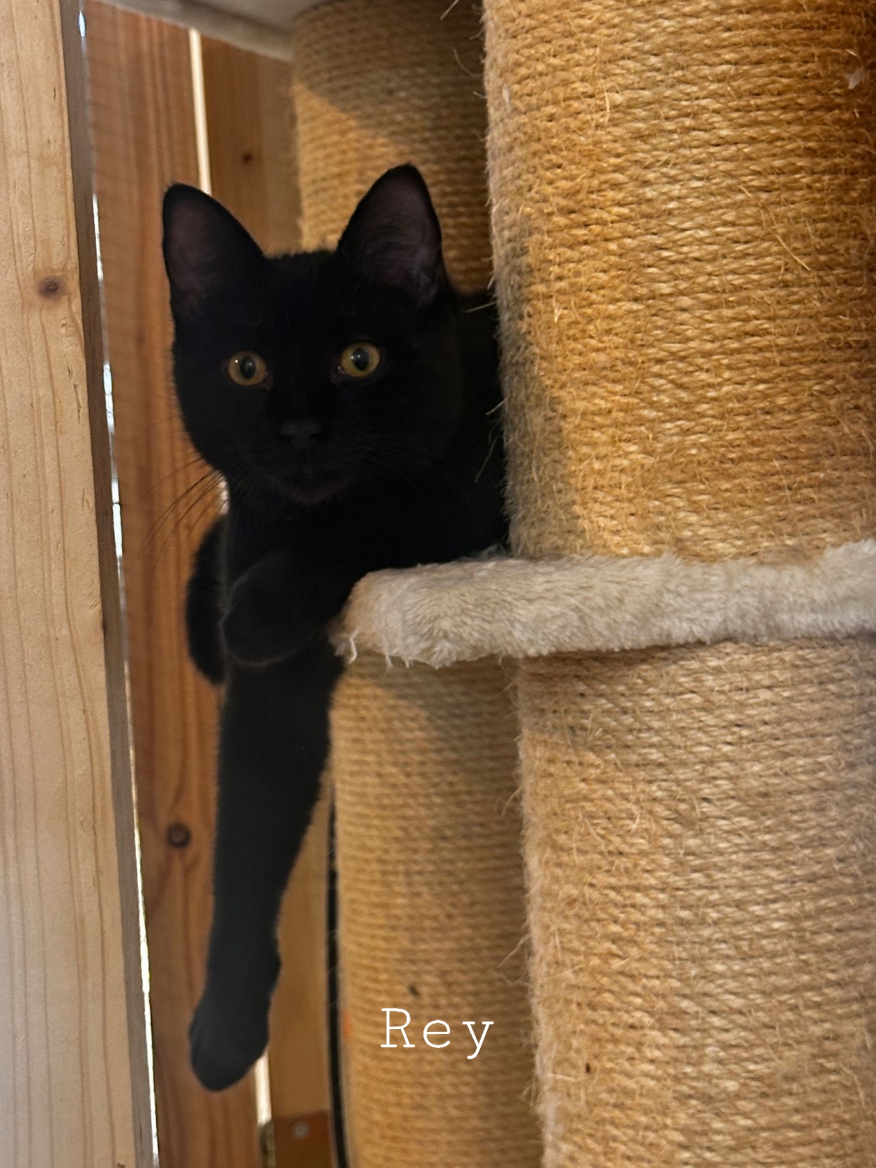 Rey ist dem Menschen gegenüber noch zurückhaltend. Er hat grosse Fortschritte gemacht und lässt sich von seiner Bezugsperson streicheln. Gerne beobachtet er das Geschehen. Er ist aktiv, verspielt und sozial anderen Katzen gegenüber.