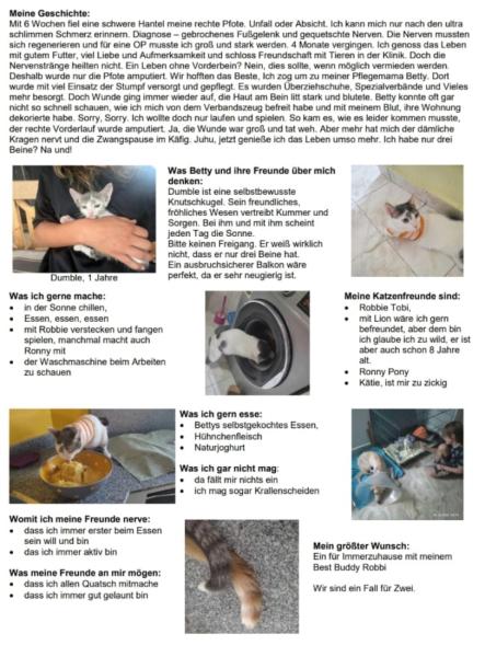Die Beiden sind kastriert, geimpft, FIV/FeLV negativ, Tollwut negativ (und geimpft), gechipt und stubenrein. Die beiden sind Wohnungskatzen, für einen gesicherten Balkon wären sie aber dankbar.