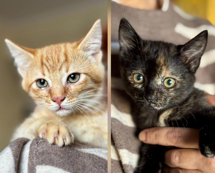 Roulis und Tarta sind ein unzertrennliches Geschwisterpaar geboren Anfang Oktober 2025. Ihr Leben begann nicht leicht: Während eines Regenschauers wurden sie draußen gefunden, zitternd vor Angst, dicht beieinander unter einem Busch versteckt. Sie hatten nur einander – und genau das hat sie gerettet.