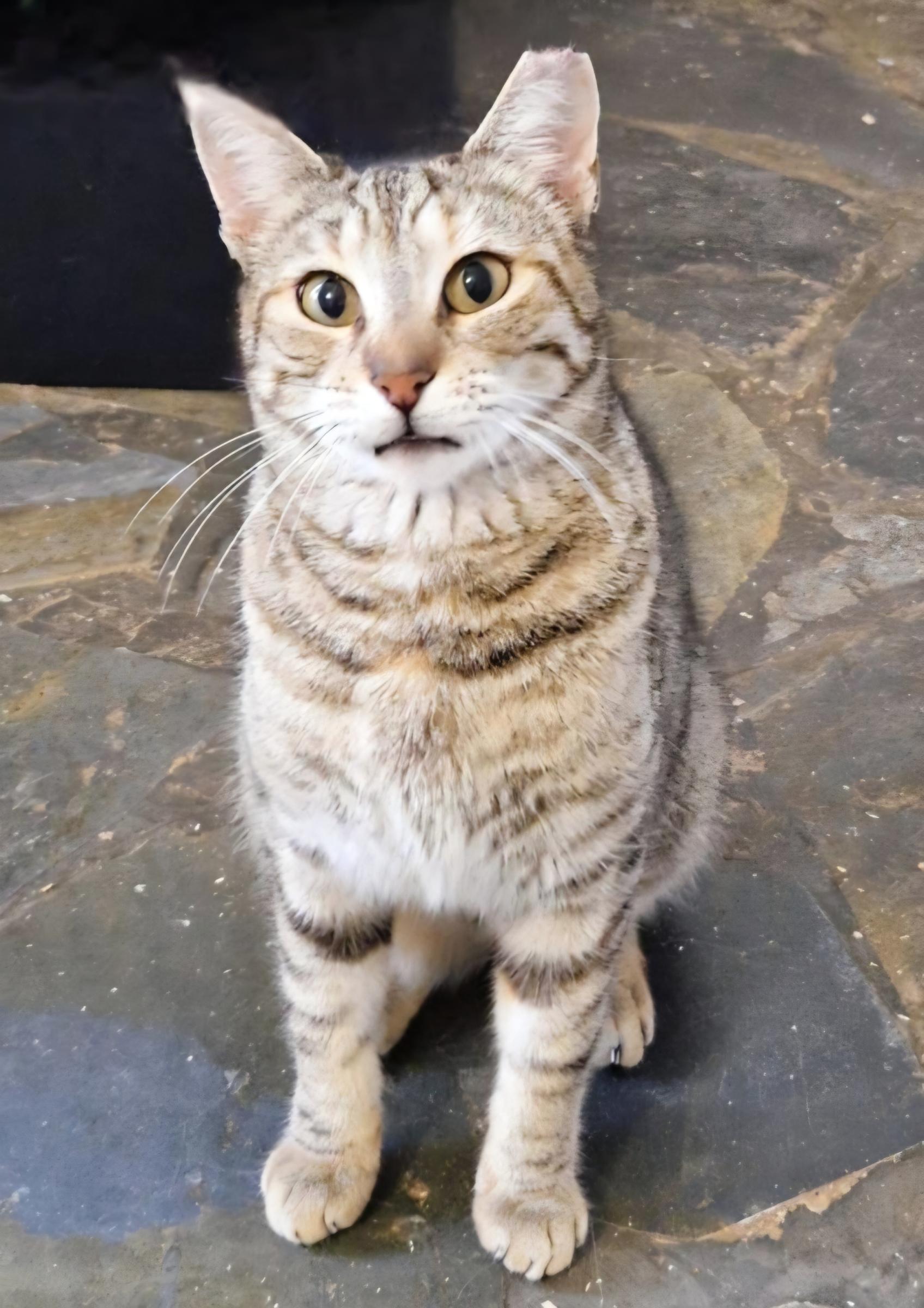 Sie ist ca. 2 Jahre alt (04/24), kastriert, geimpft und wird in Kürze auf FIV und FeLV getestet.