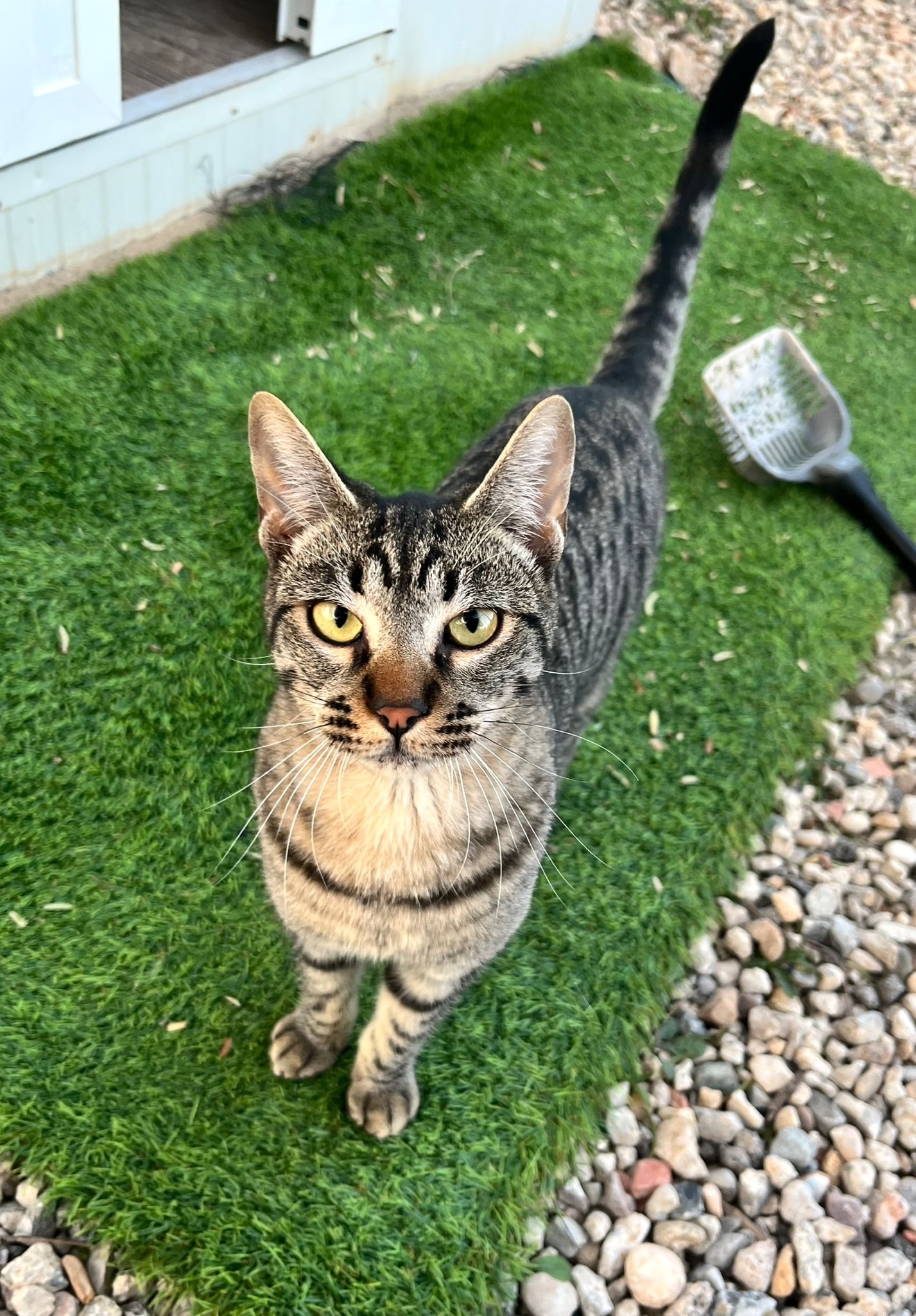 Sebas ist der Schüchternste seiner Geschwister – wobei seine Schüchternheit wirklich nur sehr gering ausgeprägt ist. Als er ankam, war er zunächst etwas ängstlich, doch inzwischen hat er sich zu einem verspielten, freundlichen Kater entwickelt. Besonders süss ist, dass er sofort versucht, mit seiner Pfote nach dir zu angeln, sobald man die Tür öffnet.