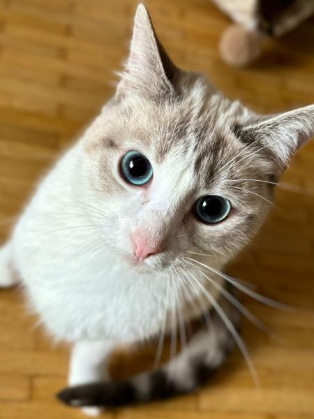 Die Harlekin-Schönheit verzaubert mit ihren Augen oder spätestens dann, wenn sie dich zum Lächeln bringt. Sie liebt es gebürstet zu werden und flitzt gerne mit Snow über die Catwalks.