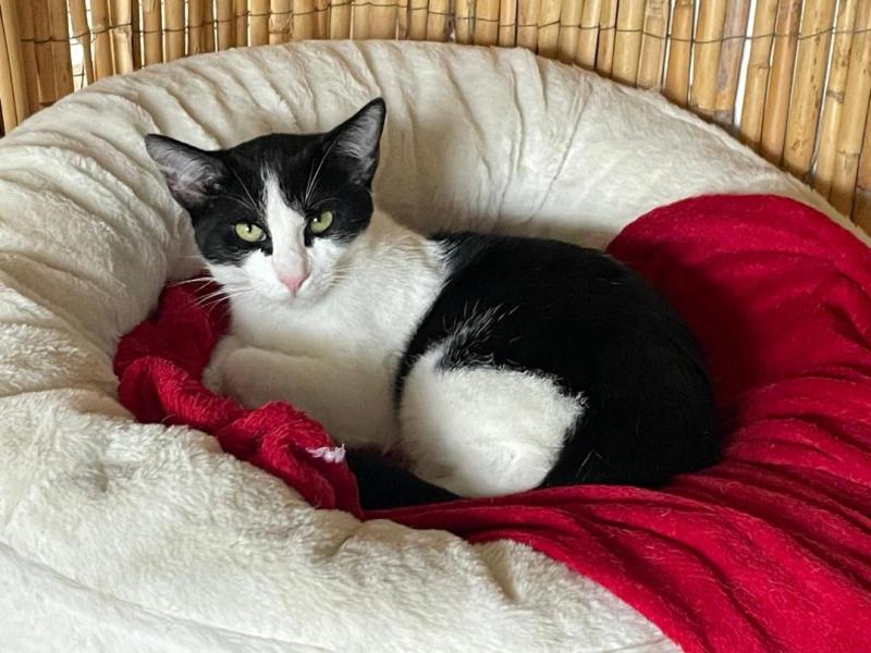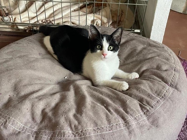 Der hübsche schwarz-weisse Spanier Suerte ist ein freundliches Katerchen, das seine Gspändli sehr liebt. Mit ihnen tollt er durch das ganze Katzenhaus, kuschelt gerne und spielt für sein Leben gerne. Er liebt Streicheleinheiten und ist dem Menschen zugetan.