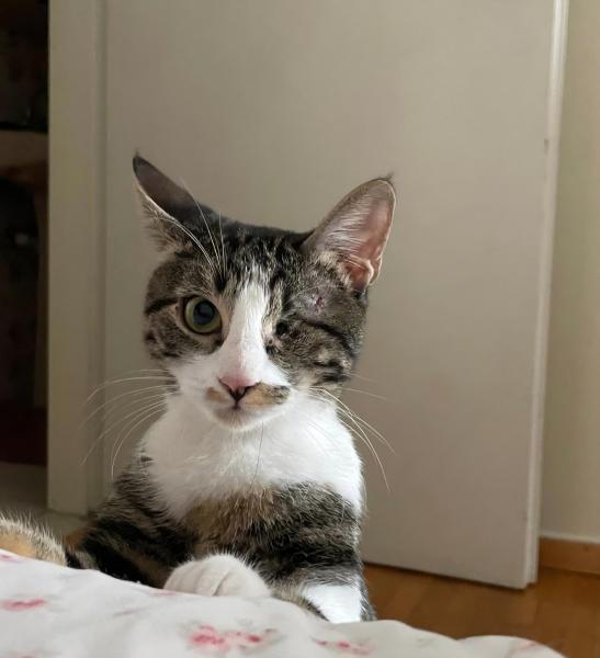 Jane kam mit gerade einmal zwei Monaten ins Tierheim – schwer krank, ein Auge konnte nicht gerettet werden. Aber Jane ließ sich nicht unterkriegen. Sie wuchs zu einer mutigen, lebensfrohen und unglaublich liebevollen Katze heran. Sie ist zärtlich, verschmust und gleichzeitig selbstständig – niemals dominant, sondern ruhig, stark und voller Wärme. Jeden Tag ist sie Tarzans stille Stütze, seine Sicherheit, sein Zuhause.