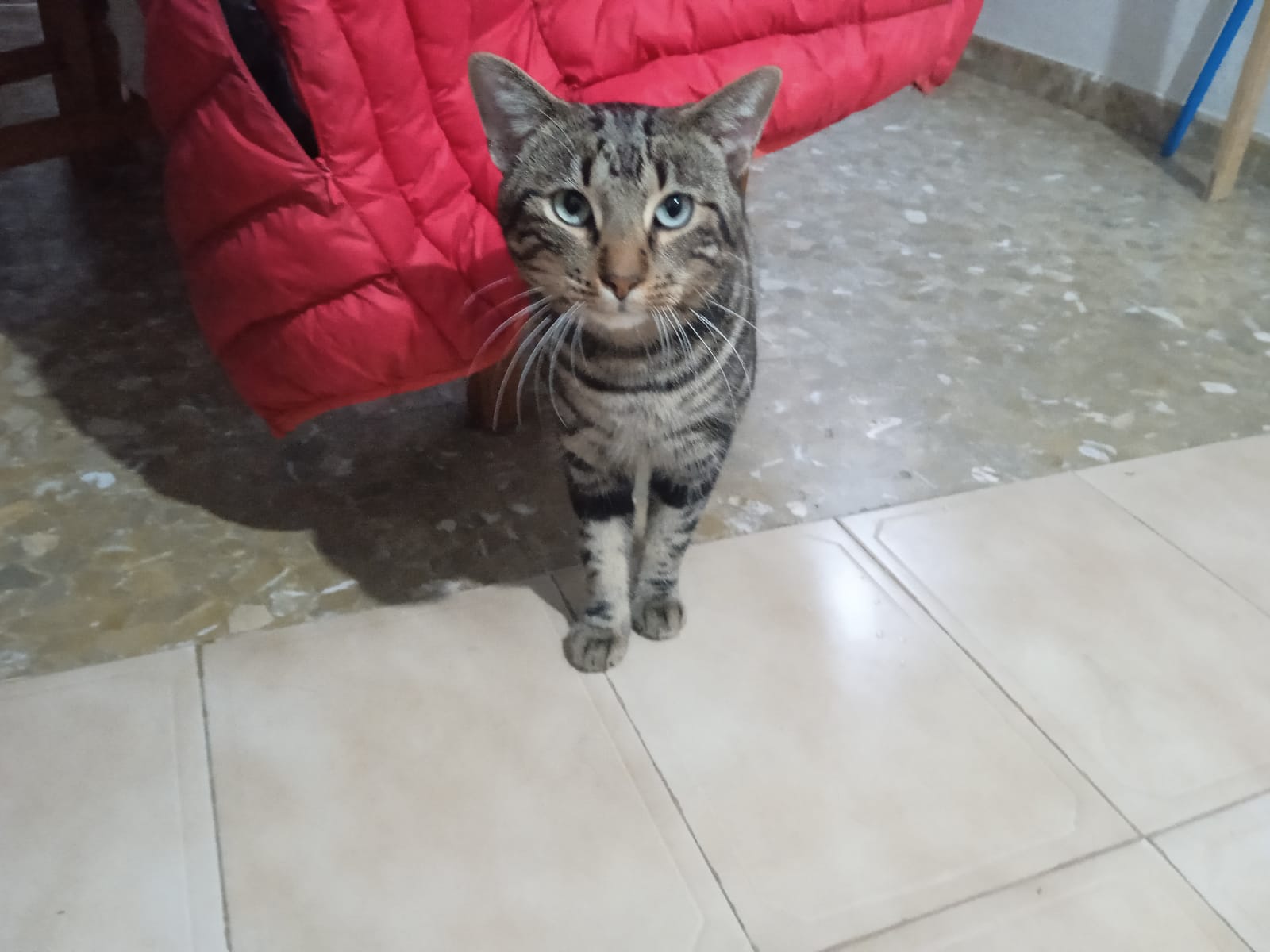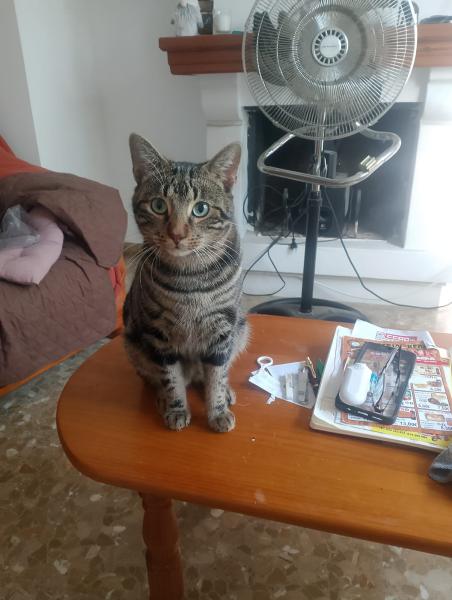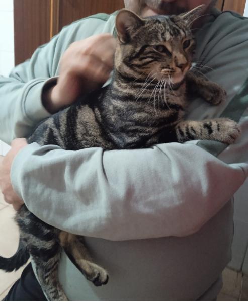 Er wurde vor kurzem als Neuzugang in einer betreuten Kolonie von heimatlosen Strassenkatzen entdeckt. Er war sehr hungrig und suchte sofort den Kontakt zu der Tierschützerin Teresa. Doch bevor er das gereichte Nassfutter ass, wollte er zuerst gestreichelt werden.