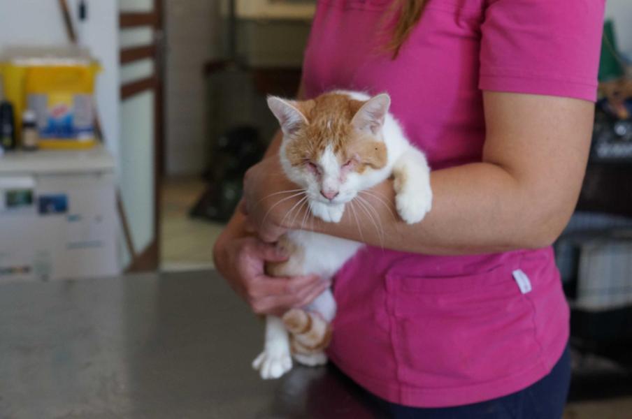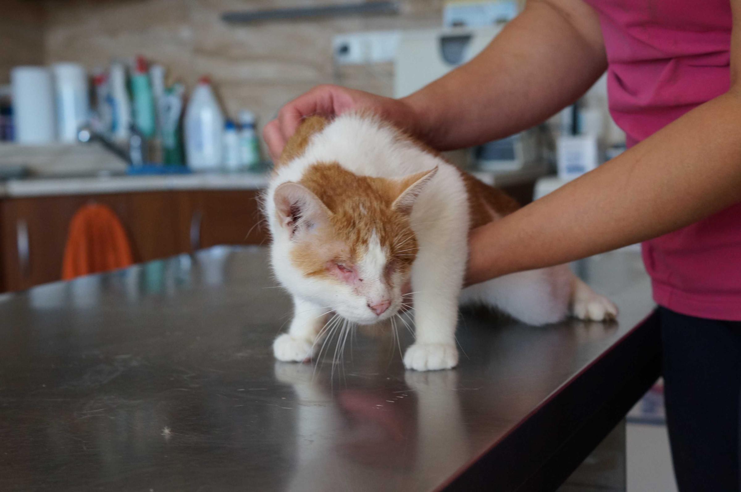 - er hat eine sehr starke Augenentzündung weshalb er nun blind ist